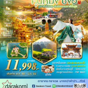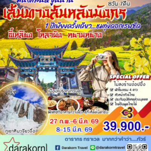 ทัวร์จีน -คุนหมิง ต้าลี่ ลี่เจียง ภูเขาหิมะมังกรหยก 5วัน4คืน(KY)เดือนพฤศจิกายน 2568 – มีนาคม 2569