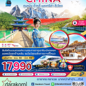 ทัวร์จีน – คุนหมิง ต้าหลี่ แชงกรีล่า ลี่เจียง ภูเขาหิมะมังกรหยก (นั่งรถไฟความเร็วสูง) 5วัน4คืน(KY)เดือนพฤศจิกายน 2568 – มีนาคม 2569