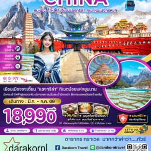 ทัวร์จีน – คุนหมิง ต้าหลี่ ลี่เจียง แชงกรีล่า ภูเขาหิมะมังกรหยก (ไม่ลงร้าน-นั่งรถไฟ-รวมรถขนกระเป๋า) 6วัน5คืน(KY)เดือนมีนาคม – ตุลาคม 2569