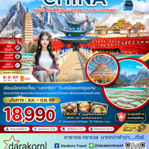ทัวร์จีน – ลี่เจียง ต้าหลี่ แชงกรีล่า เสน่ห์เมืองโบราณท่ามกลางขุนเขา นั่งรถไฟชมวิวภูเขาหิมะมังกรหยก 6วัน5คืน(DR)เดือนมกราคม 2569