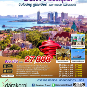 ทัวร์จีน – บินตรงชิงเต่า มนต์รักริมทะเล เสน่ห์ซานตง ชิงเต่า เยียนไถ เผิงไหล เว่ยไห่ 6วัน5คืน(QW)เดือนมีนาคม – พฤษภาคม 2569