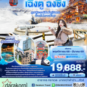 ทัวร์จีน – มนต์เสน่ห์แห่งเสฉวน…เฉิงตู ฉงชิ่ง ภูเขาหิมะการ์เซียต๋ากู่ปิงชวน นั่งรถไฟความเร็วสูง 7วัน5คืน(3U)เดือนพฤศจิกายน 2568 – มีนาคม 2569