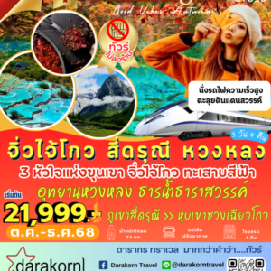 ทัวร์จีน – 3 หัวใจแห่งขุนเขา จิ่วไจ้โกว สี่ดรุณี หวงหลง 5วัน4คืน(MU)เดือนตุลาคม – ธันวาคม 2568