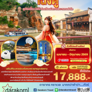 ทัวร์จีน – สัมผัสศรัทธาแห่งเสฉวน เฉิงตู ตูเจียงเอี้ยน ง้อไบ๊ ล่องเรือนมัสการพระหลวงพ่อโต 5วัน4คืน(MU)เดือนเมษายน – มิถุนายน 2569