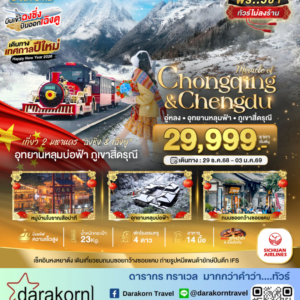 ทัวร์จีน – มหัศจรรย์…ฉงชิ่ง เฉิงตู อู่หลง หลุมฟ้า ภูเขาสี่ดรุณี (ไม่ลงร้าน-นั่งรถไฟความเร็วสูง) 6วัน5คืน(3U)เดือนธันวาคม 2568