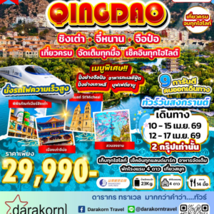 ทัวร์จีน – ชิงเต่า เที่ยวครบ ไม่มีมื้ออิสระ 6วัน5คืน(QW)เดือนมีนาคม – มิถุนายน 2569