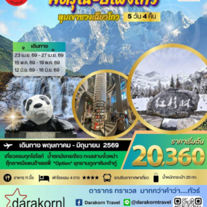 ทัวร์จีน – ภูเขาสี่ดรุณี อุทยานปี้เผิงโกว(ไม่ลงร้าน) 5วัน4คืน(SL)เดือนพฤศจิกายน 2568 – มิถุนายน 2569