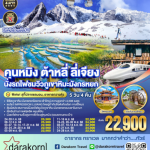 ทัวร์จีน – คุนหมิง ต้าหลี่ ลี่เจียง นั่งรถไฟชมวิวภูเขาหิมะมังกรหยก 5วัน4คืน(MU)เดือนกรกฎาคม – ธันวาคม 2568