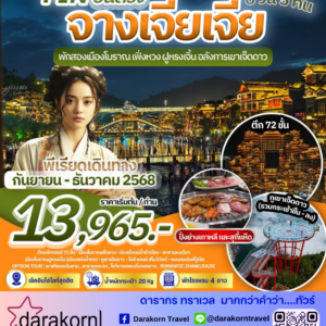 ทัวร์จีน – จางเจียเจี้ย พักสองเมืองโบราณ อลังการเขาเจ็ดดาว 6วัน5คืน(SL)เดือนตุลาคม – ธันวาคม 2568