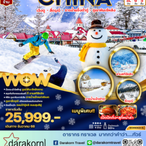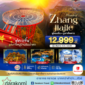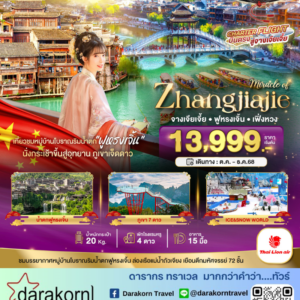 ทัวร์จีน – มหัศจรรย์…จางเจียเจี้ย ฟูหรงเจิ้น ภูเขาเจ็ดดาว เมืองหิมะจำลอง 5วัน4คืน(SL)เดือนตุลาคม – ธันวาคม 2568