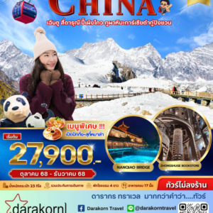 ทัวร์จีน – สี่ดรุณี จิ่วจ้ายโกว ใบไม้เปลี่ยนสี 5วัน4คืน(VZ)เดือนตุลาคม – พฤศจิกายน 2568