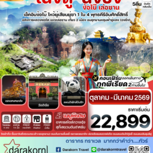 ทัวร์จีน – เฉิงตู ฉงชิ่ง ง้อไบ๊ เล่อซาน 6วัน5คืน(EU)เดือนตุลาคม 2568 – มีนาคม 2569