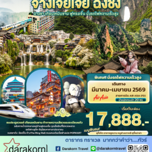 ทัวร์จีน – ดินแดนสวรรค์ สุดฝันที่…จางเจียเจี้ย ฉงชิ่ง ฉางซา เทียนเหมินซาน ฟูหรงเจิ้น นั่งรถไฟความเร็วสูง 5วัน4คืน(FD)เดือนมีนาคม – เมษายน 2569