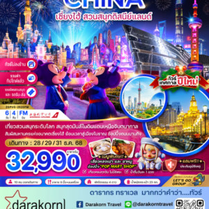 ทัวร์จีน – เซี่ยงไฮ้ สวนสนุกดิสนีย์แลนด์ (รวมบัตรสวนสนุก รถรับส่ง-ไม่ลงร้าน-รวมทิปไกด์แล้ว) 6วัน4คืน(FM)เดือนธันวาคม 2568