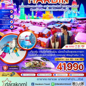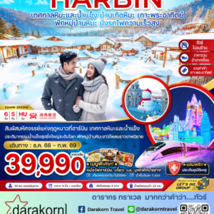ทัวร์จีน – ฮาร์บิน เทศกาลหิมะและน้ำแข็ง บ้านเกิดหิมะ เกาะพระอาทิตย์ (ไม่ลงร้าน-พักบ้านหิมะ-นั่งรถไฟความเร็วสูง) 6วัน5คืน(HU)เดือนธันวาคม 2568 – กุมภาพันธ์ 2569