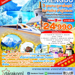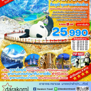 ทัวร์จีน – นั่งรถไฟ เฉิงตู ภูเขาสี่ดรุณี อุทยานจิ่วจ้ายโกว อุทยานต๋ากู่ปิงชวน 6วัน5คืน(SL)เดือนมกราคม – มิถุนายน 2569
