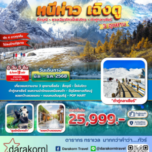 ทัวร์จีน – พิชิต 3 อุทยานสุดยิ่งใหญ่ เฉิงตู สี่ดรุณี ต๋ากู่ จิ่วจ้ายโกว 6วัน5คืน(3U)เดือนพฤศจิกายน 2568 – มีนาคม 2569