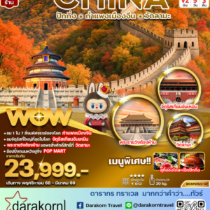 ทัวร์จีน – ปักกิ่ง กำแพงเมืองจีน พระราชวังต้องห้าม จัตุรัสเทียนอันเหมิน วัดลามะ 5วัน3คืน(VZ)เดือนพฤศจิกายน 2568 – มีนาคม 2569