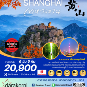 ทัวร์จีน – ภูเขาหวงซาน ภูเขาสวยดุจภาพเขียน เซี่ยงไฮ้ หาดไว่ทาน ถนนนานกิง 6วัน5คืน(SL)เดือนพฤศจิกายน 2568