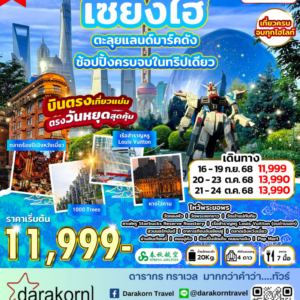 ทัวร์จีน – มหัศจรรย์มหานครเซี่ยงไฮ้ 4วัน2คืน(9C)เดือนกันยายน – ตุลาคม 2568