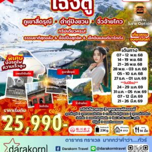 ทัวร์จีน – หนีห่าวเฉิงตู 3 อุทยาน สี่ดรุณี ปี้เผิงโกว ต๋ากู่กลาเซียร์ 6วัน5คืน(SL)เดือนตุลาคม – ธันวาคม 2568