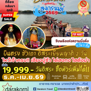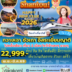 ทัวร์จีน – บินตรง ซัวเถา อิสระเยี่ยมญาติ 2 วันเต้มด้วยนะ 6วัน5คืน(CZ)เดือนธันวาคม 2568 – เมษายน 2569