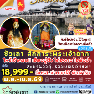 ทัวร์จีน – ซัวเถา สักการะพระเจ้าตาก 4วัน3คืน(CZ)เดือนพฤศจิกายน 2568 – เมษายน 2569
