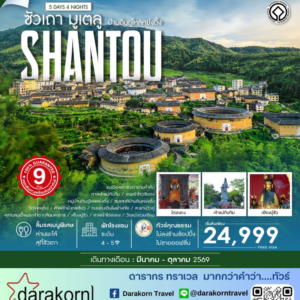 ทัวร์จีน – ซัวเถา แต้จิ๋ว พักหรู 5 ดาว 4วัน3คืน(CZ)เดือนพฤศจิกายน 2568 – เมษายน 2569