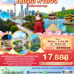 ทัวร์จีน – เมืองแห่งแสงไฟและความฝัน เซี่ยงไฮ้ หางโจว อู่ซี ซูโจว เมืองโบราณ NIANHUA WAN 5วัน4คืน(VZ)เดือนเมษายน 2569