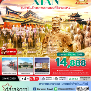 ทัวร์จีน – ซุปตาร์…รักแรกพบ ครบจบที่ซีอาน EP.2(ไม่ลงร้าน) 4วัน3คืน(9C)เดือนตุลาคม – ธันวาคม 2568