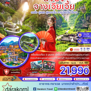 ทัวร์จีน – จางเจียเจี้ย เที่ยวครบ จบ 5 ไฮไลท์ 6วัน5คืน(SL)เดือนมีนาคม – พฤษภาคม 2569