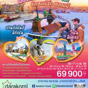 ทัวร์ยุโรป – ทิวลิปในสวนสวย อยากมีเธอไปด้วยกัน 7วัน5คืน(BR)เดือนเมษายน – พฤษภาคม 2569