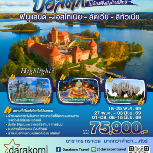 ทัวร์สแกนดิเนเวีย -บอลติก สวยจึ้งไม่ต้องพึ่งสิ่งศักด์สิทธิ์ 8วัน5คืน(TK)เดือนพฤษภาคม – มิถุนายน 2569