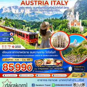 ทัวร์ยุโรป – สวิสเซอร์แลนด์ เยอรมัน ออสเตรีย อิตาลี (นอยชวานซไตน์ เขาโดโลไมท์ รถไฟขึ้นแมทเทอร์ฮอร์น) 8วัน5คืน(TK)เดือนมิถุนายน 2569
