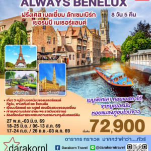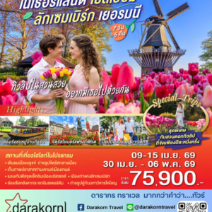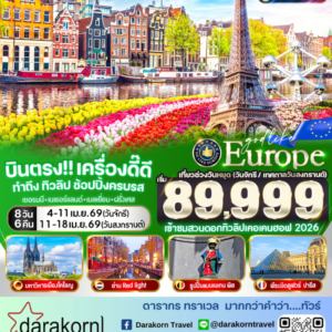 ทัวร์ยุโรป – บินตรง เครื่องดี๊ดี BENELUX ฉันรักทิวลิป 8วัน5คืน(DE)เดือนมีนาคม – เมษายน 2569