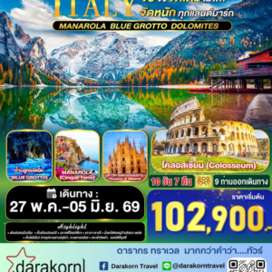 ทัวร์ยุโรป – อิตาลีครบจบจึ้ง จัดเต็มไม่พัก จัดหนักทุกแลนด์มาร์ก อิตาลีใต้จรดเหนือ 10วัน7คืน(EK)เดือนพฤษภาคม 2569