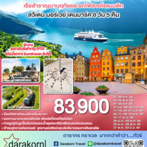 ทัวร์สแกนดิเนเวีย -เรือสำราญบานฤทัยและรถไฟสายโรแมนติก 8วัน5คืน(EK)เดือนพฤศจิกายน 2568 – พฤษภาคม 2569