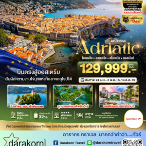 ทัวร์ยุโรป – มหัศจรรย์…เอเดรียติก โครเอเชีย ออสเตรีย สโลวีเนีย บอสเนีย 10วัน7คืน(OS)เดือนพฤษภาคม – ตุลาคม 2569