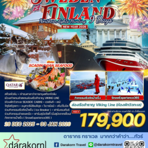 ทัวร์สวีเดน ฟินแลนด์ – ทัวร์สวีเดน ฟินแลนด์ ฉลองปีใหม่ ล่าแสงเหนือ 9วัน6คืน(QR)เดือนธันวาคม 2568