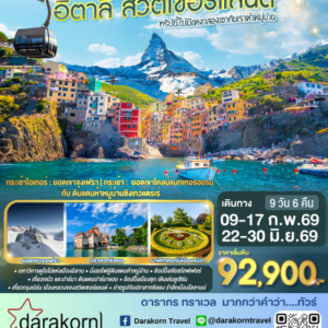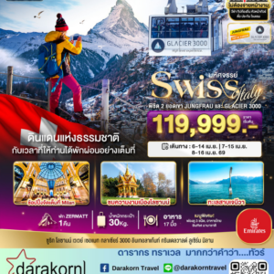 ทัวร์ยุโรป – มหัศจรรย์…สวิตเซอร์แลนด์ อิตาลี พิชิต 2 ยอดเขา ช้อปปิ้งมิลาน 9วัน6คืน(EK)เดือนเมษายน 2569