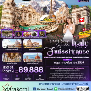 ทัวร์ยุโรป – อิตาลี สวิส ฝรั่งเศส (จุงเฟรา กอล์มา สตาร์สบูร์ก) 8วัน5คืน(SQ)เดือนเมษายน – มิถุนายน 2569