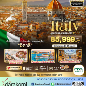 ทัวร์ยุโรป – มหัศจรรย์…แกรนด์อิตาลี บินตรงสู่กรุงโรม 7วัน5คืน(AZ)เดือนตุลาคม 2569