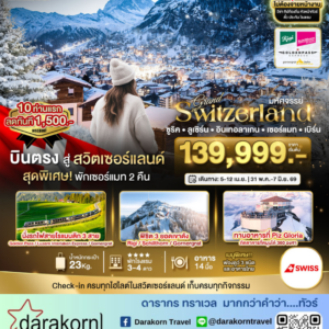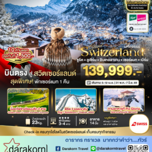 ทัวร์ยุโรป – สวิตเซอร์แลนด์ (พักบนยอดเขาพิลาตุส แมทเทอร์ฮอร์น รถไฟกอร์เนอร์แกรต GLACIER 3000) 8วัน5คืน(TK)เดือนมกราคม – กุมภาพันธ์ 2569