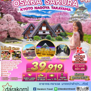 ทัวร์ญี่ปุ่น – ทัวร์ เรียล เรียล…โอซาก้า ซากุระ ชมพู หวานแวว 6วัน4คืน(XJ)เดือนมีนาคม 2569