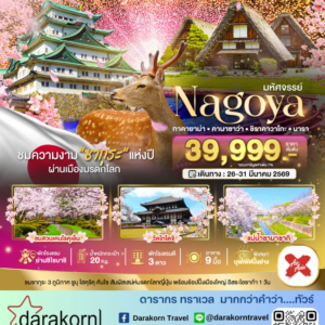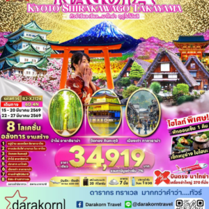 ทัวร์ญี่ปุ่น – โอซาก้า นาโกย่า ทาคายาม่า เกียวโต ซากุระ 5วัน3คืน(MM)เดือนมีนาคม – เมษายน 2569
