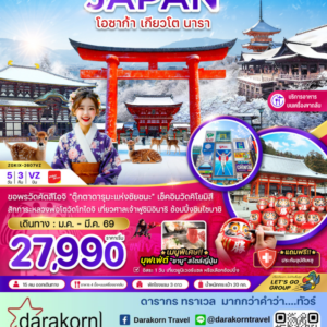 ทัวร์ญี่ปุ่น – โอซาก้า เกียวโต นารา ช้อปปิ้งชินไซบาชิ 5วัน3คืน(VZ)เดือนมกราคม – มีนาคม 2569