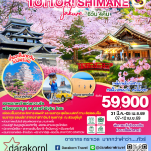 ทัวร์ญี่ปุ่น – UNSEEN OKAYAMA TOTTORI SHIMANE SAKURA 6วัน4คืน(TG)เดือนมีนาคม – เมษายน 2569