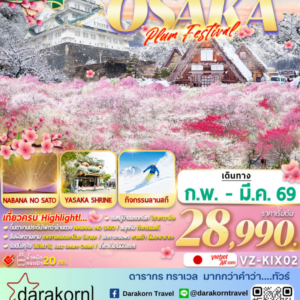 ทัวร์ญี่ปุ่น – OSAKA SHIRAKAWAGO PLUM FESTIVAL 5วัน3คืน(VZ)เดือนกุมภาพันธ์ – มีนาคม 2569
