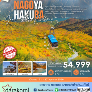 ทัวร์ญี่ปุ่น – NAGOYA HAKUBA JAPAN ALPS ฟรีเดย์ 7วัน5คืน(SQ)เดือนตุลาคม 2568