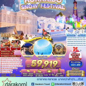ทัวร์ญี่ปุ่น – มหัศจรรย์…HOKKAIDO เทศกาลน้ำแข็งทะเลสาบชิโคทสึ อาซาฮิกาว่า ซัปโปโร 5วัน3คืน(XJ)เดือนกุมภาพันธ์ 2569